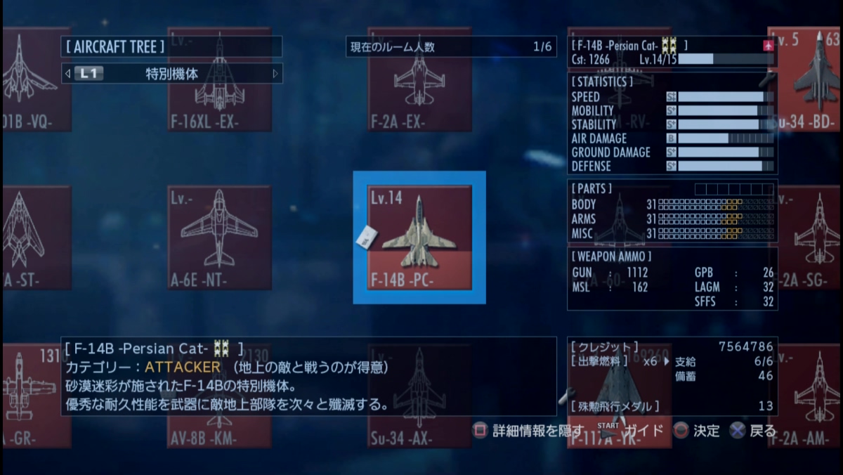 F-14B PC ペル猫がまだ14歳。エースコンバットインフィニティ終了まであと約一月だが、もうちょっと育ててみるかー